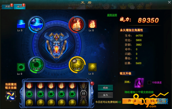 3. 四种铭文都达到30级后可开启“铭刻”,每天有3次免费铭刻的机会。