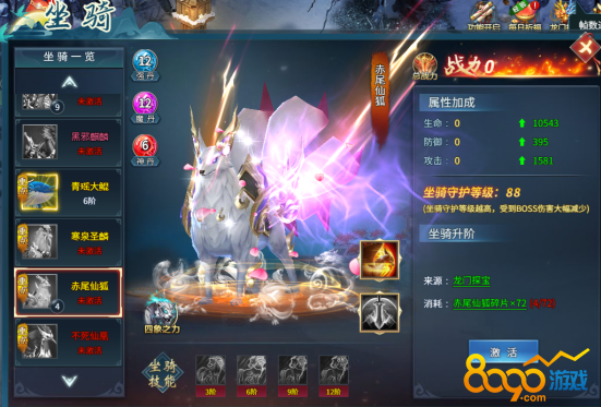 通过运营活动以及击败稀有BOSS获得坐骑碎片集齐可合成坐骑,消耗坐骑丹可提高坐骑等阶获得大量属性,当阶数达到当量阶数时会激活被动技能。