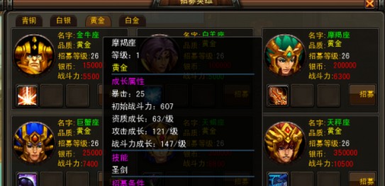 惊天战神本次更新后系统能招募更多的英雄了, 十二黄金圣斗士已经星矢都在被招募的列表中,下面为大家介绍如果招募这些英雄。