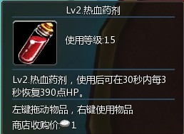 4、LV2热血药剂20个、LV1热血药剂20个、LV2生命之水20个、LV1生命之水20个