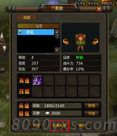 PS:“英雄”按钮需要玩家到达一定等级,完成任务开启