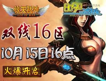 8090惊天战神双线15区将于2012年10月15日16点周一盛大开启。全新的神殿战场,全新的热血征程,相约万千玩家,聚首万千期待,我们喜迎新服开启,特别推出九大倾情好礼,助玩家尽情畅游战神之旅。8090惊天战神祝您游戏愉快!
