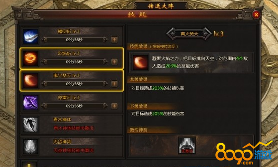 通过消耗神技技能书激活各个技能的神技,神技大幅增加技能伤害