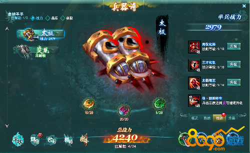 太极这么好用,但培养资源是有限的,对于太极我们该如何培养呢。如果没有更好的神兵,对我们来说太极可以培养,技能培养除了大R随便点一般玩家只加满绝技就好了,毕竟神兵诀是肯定不够用的。