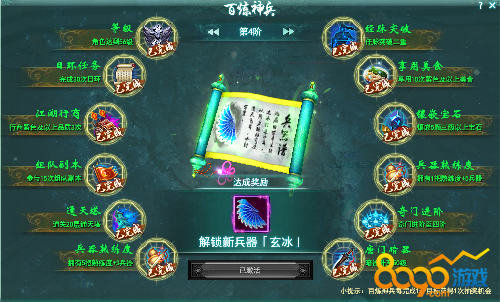 玄冰作为剑侠情缘兵器谱中与首冲火扇子对应的冰扇子,有着拉风的造型和绚丽的技能。想要获得玄冰,只有完成百炼神兵第四阶才能得到。
