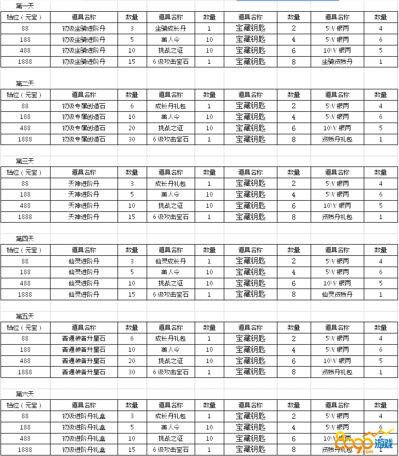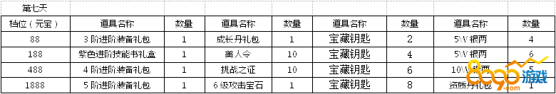具体的每日首充奖励见下表: