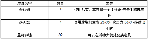 金铃铛:使用后有机会得到一样下列道具赤云兽碎片*1、归元秘籍*3、天书秘籍残页*3、三魂石*3、侍魂珠*2