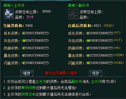 1、合成消耗副宠物提高宠物的资质,合成后主宠物降为一级。