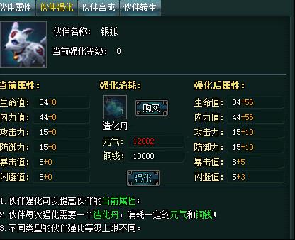 1、宠物强化消耗元气和铜钱,提高宠物的属性,宠物强化和宠物品质无关;