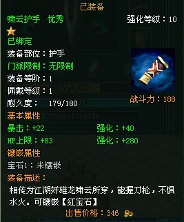 这里绿头巾从零级升到十级,战力增加180点,另外的装备测试见下图: