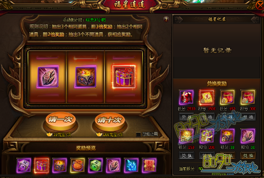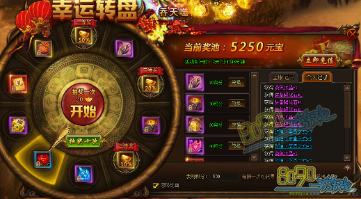 玩家每次转动转盘,都会有5元宝累计作为奖池奖金,每次转盘均有机会获得奖池百分比的奖金及珍贵道具