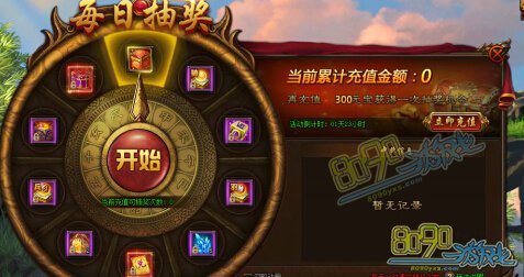 【活动内容】活动期间,玩家每充值300元宝即可获得每日转盘次数一次,转动转盘即可获得各种珍贵道具,赢取酷炫套装、极品传奇装备!