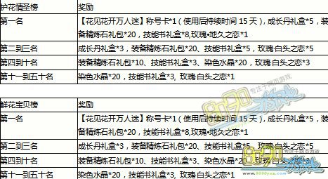 【活动内容】在活动期间,玩家通过赠送鲜花与收取鲜花获得魅力值,登上护花情圣榜(男生排行榜)与宝贝鲜花榜(女生排行榜),排名在前50名的玩家可以获得丰厚奖励!活动奖励将会在次日凌晨通过邮件发放。