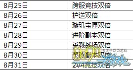 活动内容:双倍福利迎相聚,每日登录皆不同。活动期间,全服玩家可在每日指定时间内获得对应的双倍奖励。
