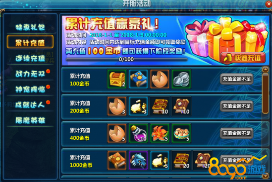 【活动内容】活动期间,累计充值达到指定值时可以领取奖励