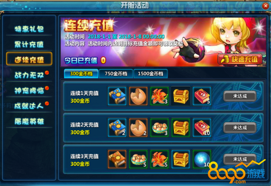 【活动内容】活动时间内连续充值到达指定金额即可获取对应奖励