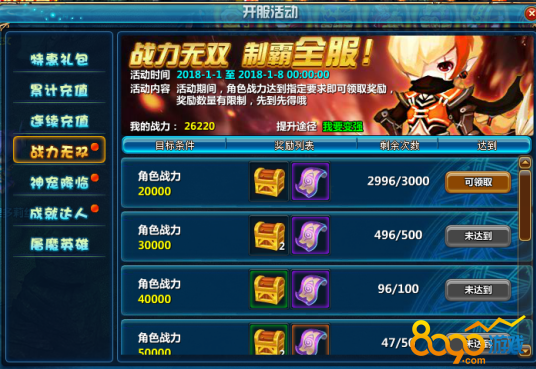 【活动内容】活动期间,角色战力到达指定阶段时可以获得对应奖励,每档奖励有领取人数的限制。