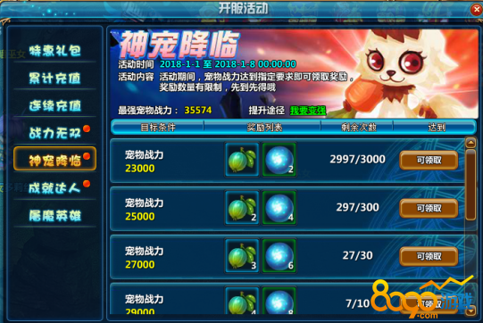 【活动内容】活动期间,宠物战力到达指定阶段后可以获得对应奖励,每档奖励有领取人数的限制。