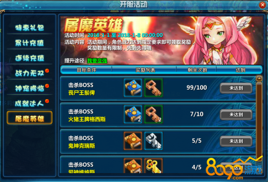 【活动内容】活动期间,成功击杀指定boss可以获得对应奖励,每档奖励有领取人数的限制。