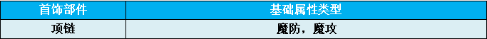 首饰类装备目前开放项链,全职业通用,基础属性见下表: