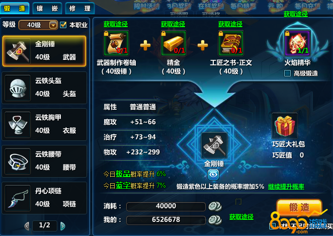 搜索"8090网页游戏"在8090剑与魔法中人物装备是很重要的一环!人物装备可划分为武器类、防具类、首饰类三大类。武器类有职业限定,防具类部分职业通用,首饰类全职业通用。装备的属性则有生命上限,速度,物攻,魔攻,物防,魔防等,对于不同的装备,其附带的基本属性也是不同的。