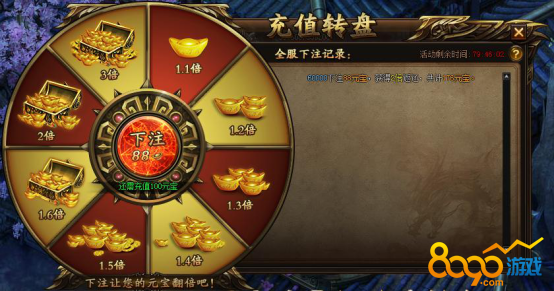 【活动内容】活动期间,下注相应元宝,即可获得多倍返利,不要犹豫,下注让您的元宝翻倍吧!