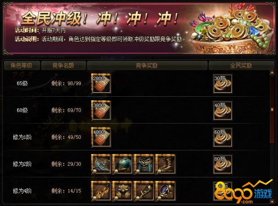 【活动内容】活动期间,玩家达到指定等级即可领取冲级奖励。