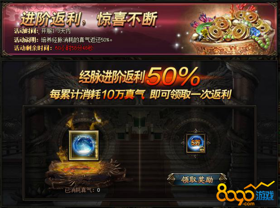 【活动内容】 活动期间,培养经脉即可获得50%高额返利!
