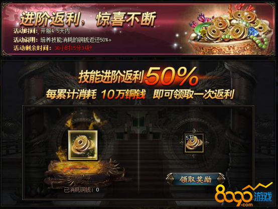 【活动内容】活动期间,升级技能即可获得50%高额返利!