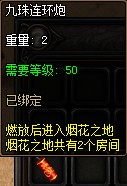 九珠连环炮:重量2,需要等级50,已经绑定。