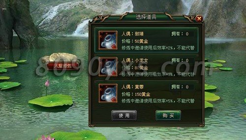 3、陪练娃娃。如果你在一个空位上,放上一个陪练人偶,那么会根据人偶的不同得到不同的加成。具体是:郭靖2%,小龙女4%,黄蓉5%。(根据,金大侠的描写,他们3个智力好像是加成的依据。郭靖最笨,小龙女次之,黄蓉最聪明……)注意,陪练人偶对全房间人有效。