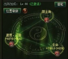 出阵加成:LV8(已激活),速度、闪避+4979(60%),限主角1,生命+19918(+60%)