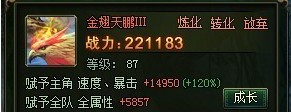 金翅天鹏III,炼化,转化,放弃。