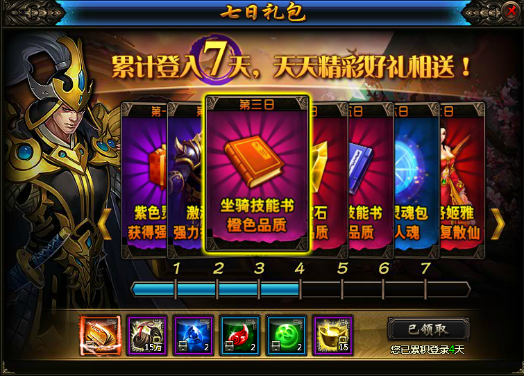 【活动内容】只要您登陆游戏,就可获得为您量身准备的各种礼物和元宝!轻轻松松点击鼠标,即获得丰厚奖励,赶快参与吧!