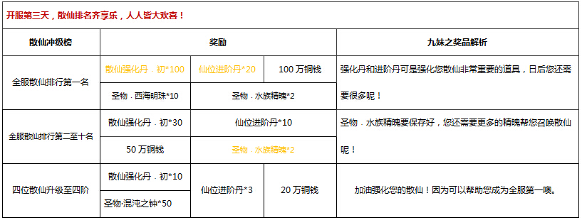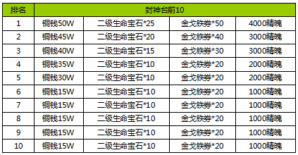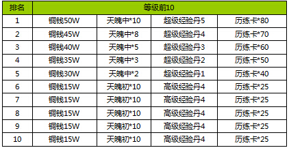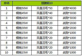 【活动内容】每天0点时排行榜中的战力、等级、封神台、翅膀、坐骑、散仙排行榜的前10名玩家可获得高额的奖励。