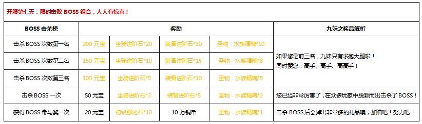 【活动内容】开服七天内,九妹仅需要您达到以下等级要求,即可获得大量道具及礼包噢!