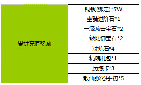 【活动内容】:累计充值每达到500元宝即可领取累计充值礼包1次,多充多领,领到手软,内含: