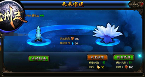 天英宝莲为九州志中翅膀升级所需灵气的唯一产出途径。每天可以战勋浇灌宝莲20次及元宝浇灌50次,每次浇灌可以获得20点灵气。如果没有足够的战勋,而玩家又急需升级翅膀,那只能花费元宝啦~!