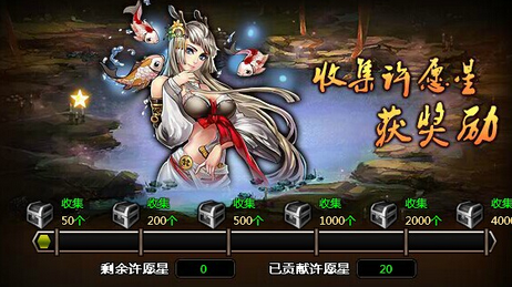 九州志星语心愿活动奖励是每当玩家贡献许愿星到50,200,500,1000,2000,4000时候会获得不同礼包,礼包包括强化石,宝石,三仙丹,玉魂,元宝甚至是神器碎片。语心愿获得如何获得万圣节时装呢,当玩家贡献许愿星到1000时候,可以获得7天时效的时装,贡献到4000时候,可以获得30天时效的万圣节时装。