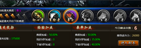 玩家每次进入副本之前可以看到下面显示着副本难度,以及通关条件是什么和开启下阶难度的条件。然而每个副本开启的条件都是一样的,满星通关就可开启下阶难度。