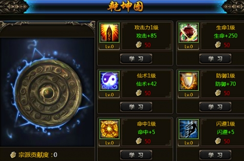 宗派技能页面可以学习宗派的技能,。宗派技能能够大大的提升宗派成员的战斗力及各种属性。想要学习这些宗派技能是需要消耗宗派的贡献度的。所以玩家在刚进宗派的时候是很缺贡献度的,商店里面有些不是很总要的东西就没必要去买了。先把技能学了。