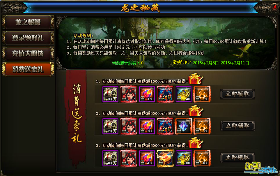2、每日累计消费必须是非绑定元宝才可以参与活动