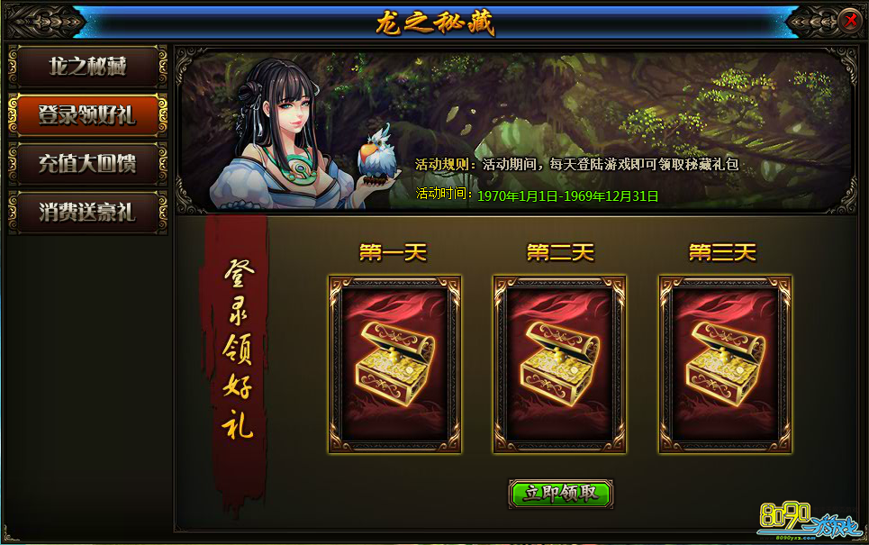 1、活动期间,每天登陆游戏即可领取秘藏礼包