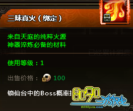 九州志三昧真火是玩家用来升阶神器的必需材料,如此珍贵的东西获得方法也只有玩家参加锁仙台,从神仙手里才可以获得这个三昧真火了,当然有些活动里也是有奖励的哦。