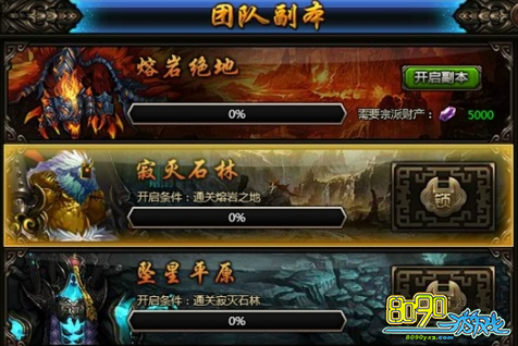 团队副本又名宗派活动,是宗派宗主或者副宗主在宗派中支付一定的宗派财产开启的。后面的三个团队副本需要顺次通关前一难度才能开启挑战资格。