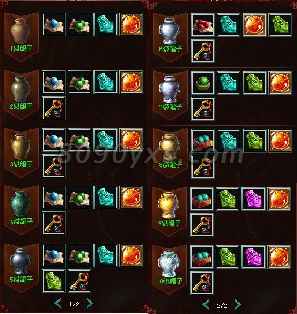 升级罐子 10=1次 注:尽量用铜币把罐子升到6级,再用元宝升到7级,这样比较划算。7级罐子奖励很好的。