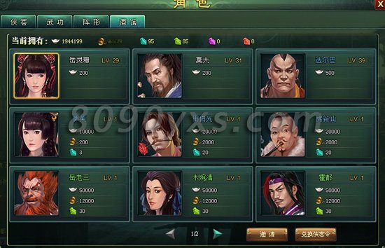 每个侠客都有自己独一无二的成名绝技,但武功越高强的侠客的招募条件也越苛刻。比如说岳老三,需要名声12000,银两50000,二品侠客令30个才能满足招募条件。