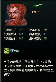 酒馆内可查看侠客信息,包括侠客名称、当前等级、初始属性、属性成长、初始技能。