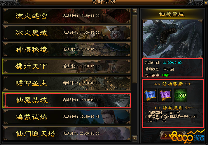 在新开天屠龙里,玩家可以参加定时活动的仙魔禁域来获得大量神通值和异宝值,同时也会获得经验值。