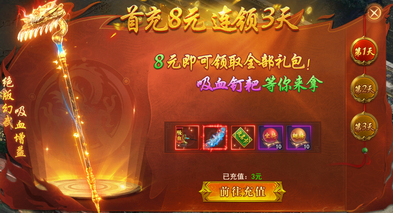 绝版幻武-吸血钉耙、绝版时装、珍稀图鉴等您来拿,连领3天助你破敌变强。